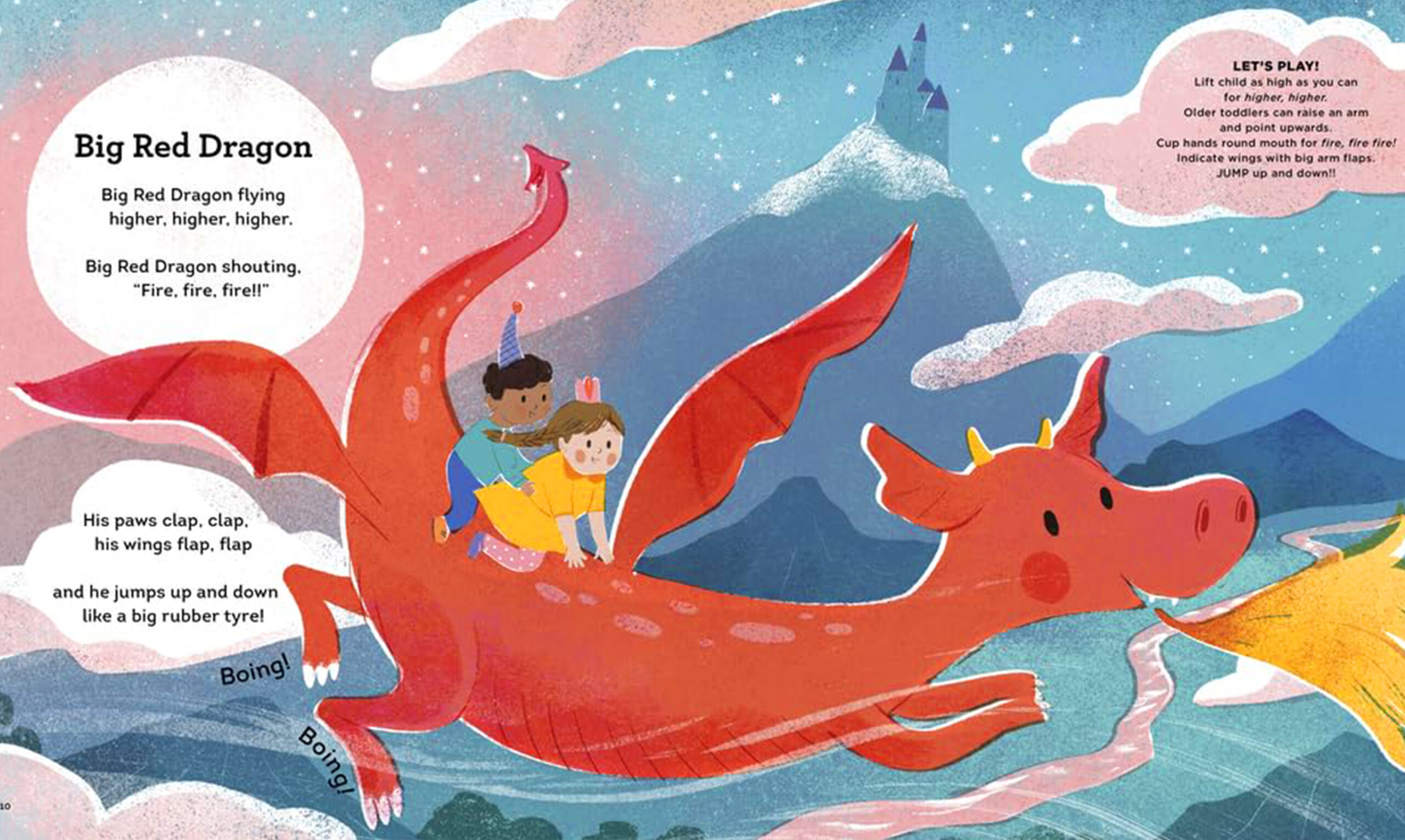 Find hamsters, dogs, robins and unicorns, little cars and big diggers – and of course Big Red Dragon, in this brilliant collection of 15 action rhymes for young children and babies.